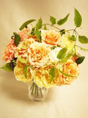 バラ(カルピディーム、モンテビアンコ、ティネケ、キャラメルアンティーク、)リキュウソウ、レモンリーフ、ビバーナム |