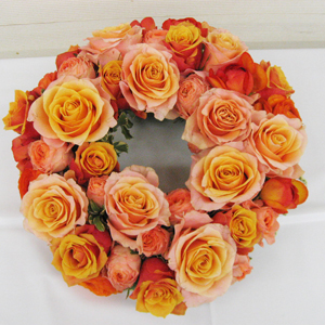 ■ウォームカラーの温かいたっぷりのバラ達でリースを作りました❤