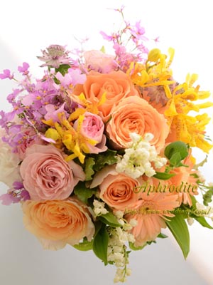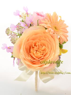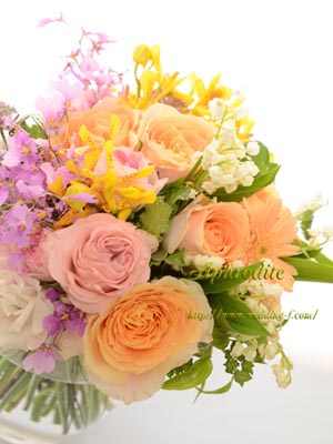 ■優しいオレンジとピンクにスズランを合わせたブーケ。