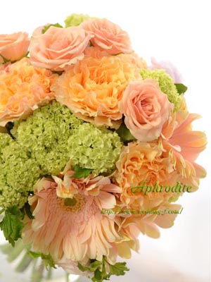 バラ、ガーベラ、ビバーナム、トルコキキョウ |