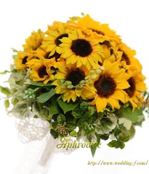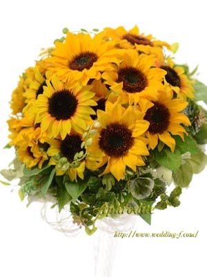 「ひまわりとグリーンだけでブーケを作って!!」という花嫁様からのオーダーでした。