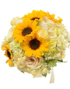 ■温かいオレンジひまわりとクリーミーなバラのブーケは、綺麗で可愛いブーケです★