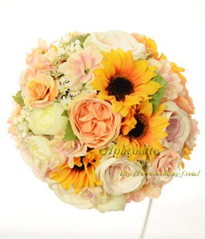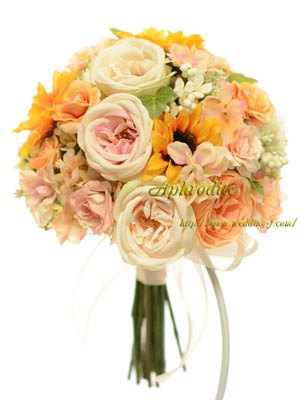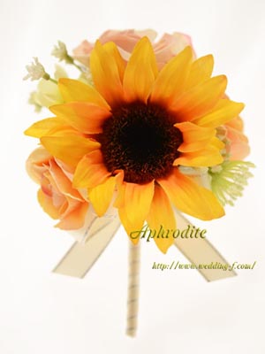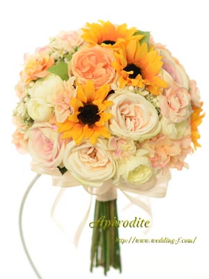 ■温かいオレンジひまわり+オレンジやクリーミーなバラのブーケは、綺麗で可愛いブーケです★