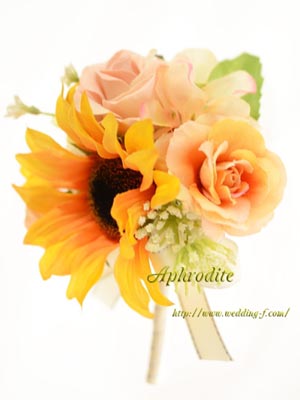オレンジのドレスに合わせて、オレンジのバラやアジサイを使いました。