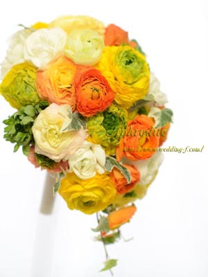 ■ふわふわしたラナンキュラスのビタミンカラーをでお作りしたティアドロップブーケです。