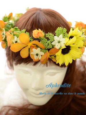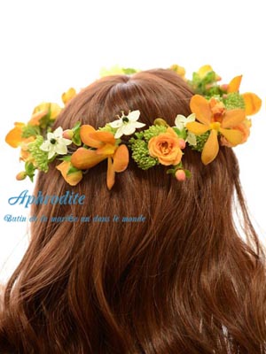 オレンジ、グリーン、ホワイトのカラーが爽やかな花冠です。