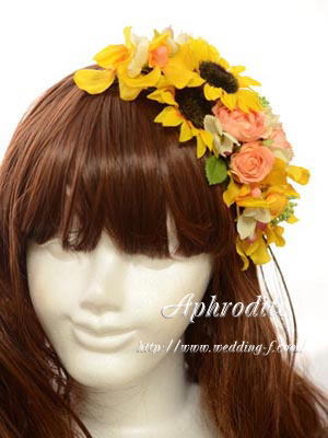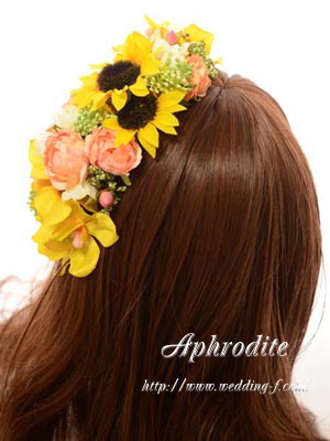 ひまわりの高さも低く作ったコンパクトタイプのヘッドドレスです。