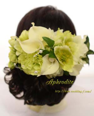 スタイリッシュなカラー、気品あるクリスマスローズと、品格のある花材達でお作りしたヘッドドレス。ボリューミーなので、「存在感も大!!」
