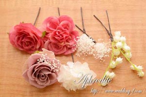 シルクフラワー→バラ(濃いピンク)、スズラン |