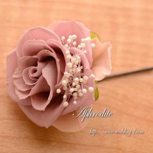 モーブピンクのバラがプリザーブドですが、花びらの間にカスミソウを入れこみ、一番外側にはヌードピンクの花びらを足してあります。(ブーケ使用のバラとリンクさせる為。)