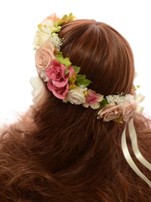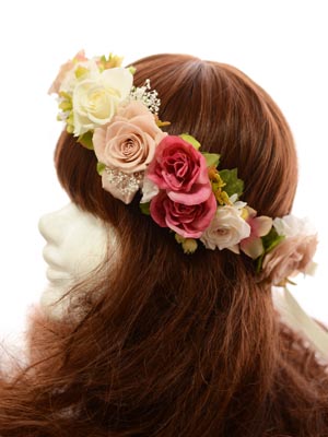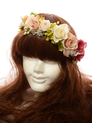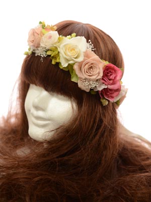 「プリザーブドとシルクフラワー」ミックスの花冠です。