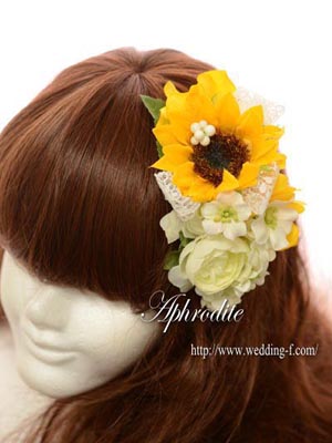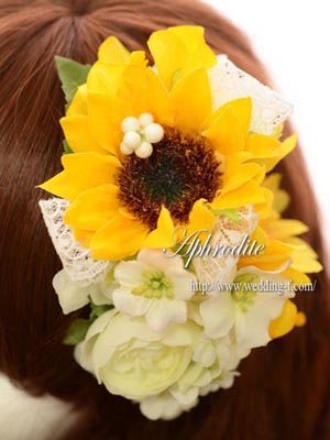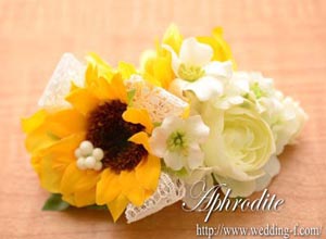 「ひまわりを使いたいけれど、ドレスに合うかしら?教えて!!」と花嫁様。