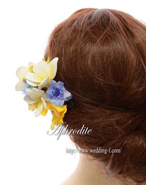 青い空と海に映える、爽やかな 「白×イエロー×ブルー」 ヘッドドレスです。