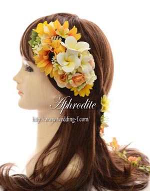 ■プルメリア&ひまわりをメインに纏めたヘッドドレスです。