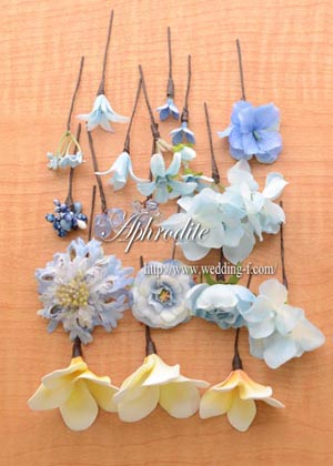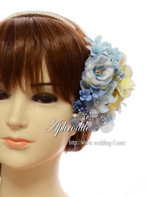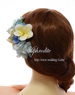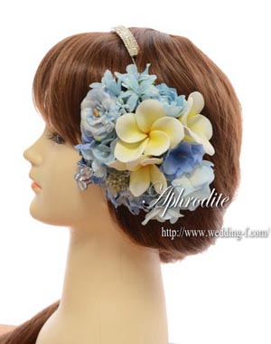 白のプルメリアをメインに、その他は水色で合わせたヘッドパーツ。