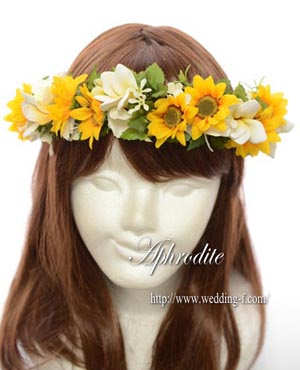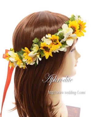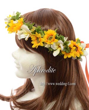 ミニヒマワリとミニプルメリアで可愛く仕上がった花冠です。