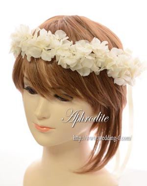 ふわふわの白アジサイの花冠。