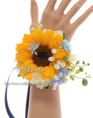ひまわり、バラ、アキレア、アジサイ、ヒペリカム、ワイヤープランツ、カスミソウ、ベリー |