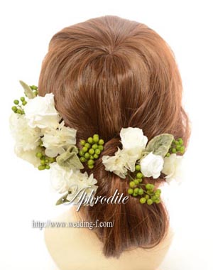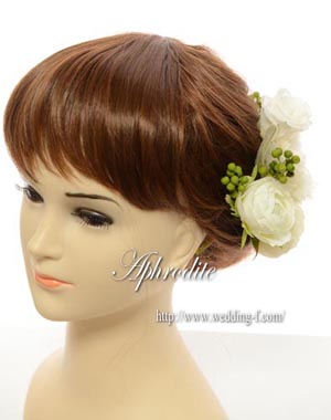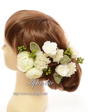 白バラをメインに、コロコロのペッパーベリーやお洒落なシルバーグリーンで、纏めたヘッドピース★