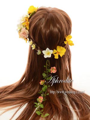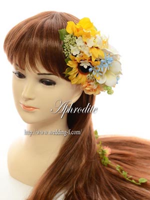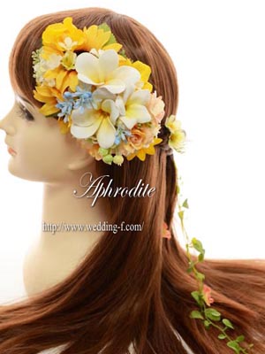 プルメリアとひまわりのヘッドドレス。