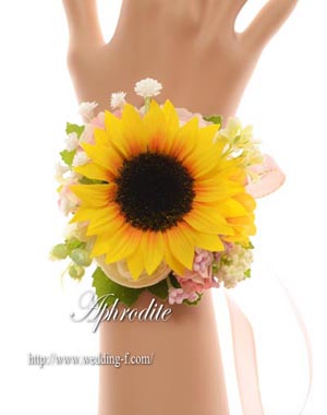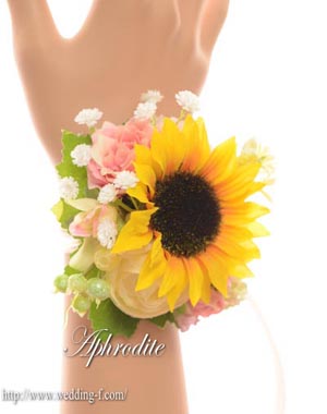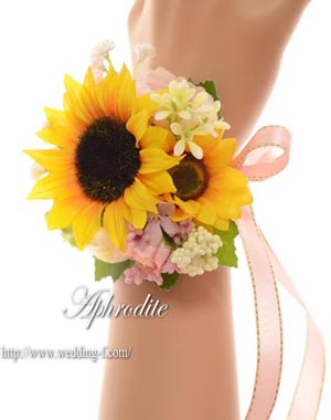 ひまわりをポイントに、小花でグルリと取り巻きました。