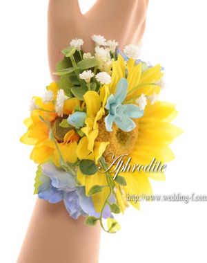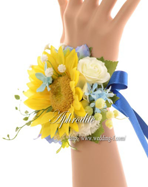 優しいイエローひまわりをポイントに、水色・白・グリーンを合わせたサマーカラー。