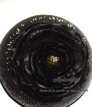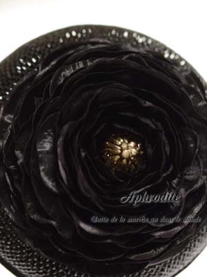 とっても綺麗な黒のラナンキュラスに合わせたスワロフスキーは「ブラックダイヤ」。