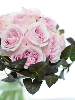 ■青みがかったバラ(リメンブランス)と紫茶のアイビー(フェイビーブラウン)でお作りした大人のクラッチブーケ。