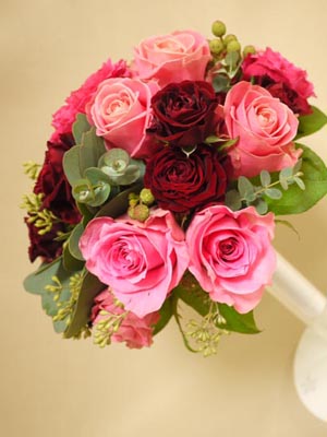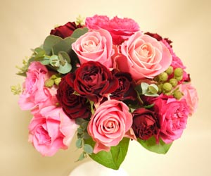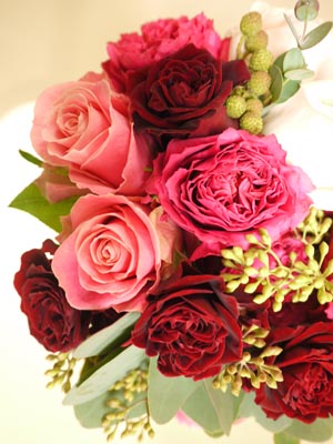 ■ピンク+赤 にシルバーグリーンや 実ものを合わせた 「大人」のブーケ。