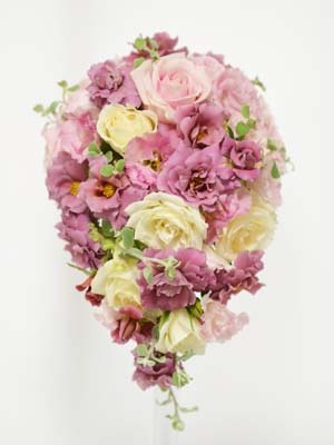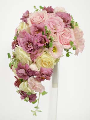 シックなピンクカラーに淡いピンクとオフホワイトのバラを合わせて~。。。