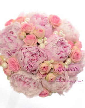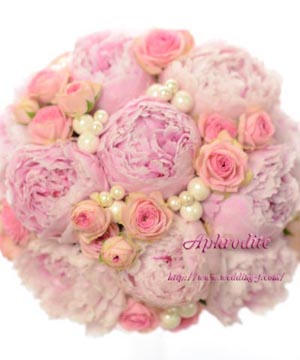 ■華やかなシャクヤクにミニバラとパールを合わせました。