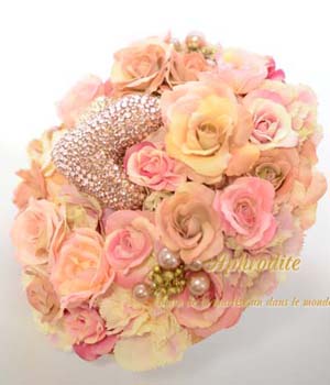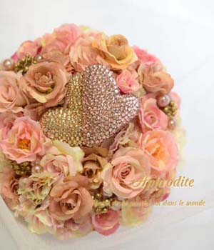 ピンクベージュの優しいお花の真ん中には、2つのハート。