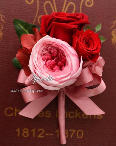2色交じりのカップ咲ローズを気に入って頂いて、ブートニアにも使いました。