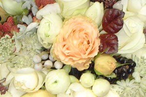 白・ベージュ・茶、黒、シルバーのお色のバラ・リーフ・実ものがとっても楽しいブーケになりました♪
