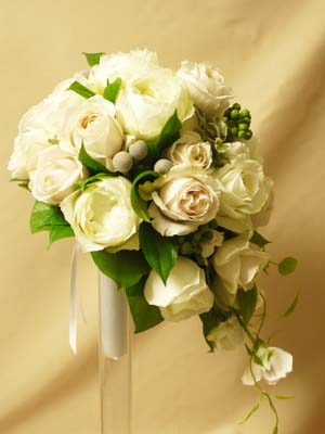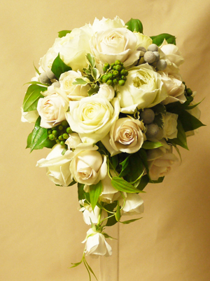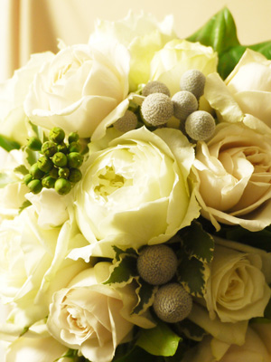 白+アイボリー+シルバーの色味が無いお花達に、グリーンを添えて~