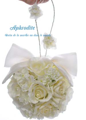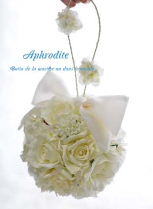持ち手にも、お花をアシンメトリーに取り付けました。「洋装&和装」、どちらにも綺麗だったブーケです。