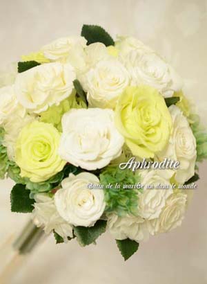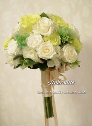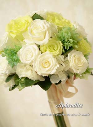 ■白・グリーンでお作りしたプリザーブドのクラッチブーケ