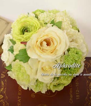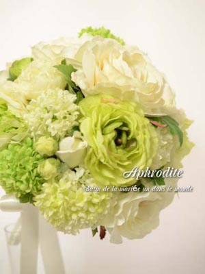 白、オフホワイト、グリーンが、綺麗なブーケです。