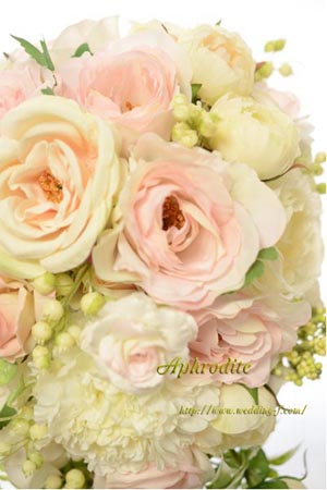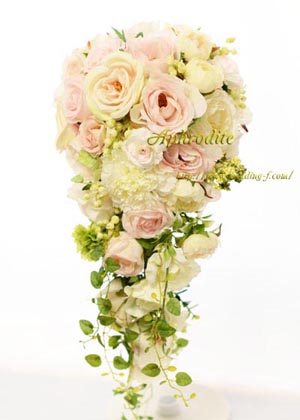 ■優しいピンクとオフホワイトのキャスケードブーケ