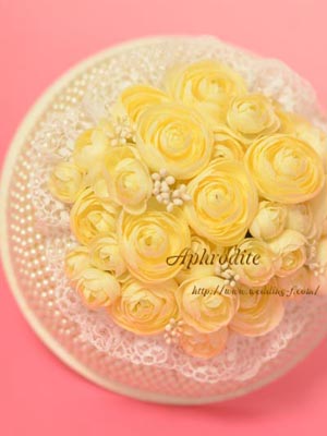 ■コロンとしたミニラナンキュラスをホワイトパールで取り巻いたリングブーケ