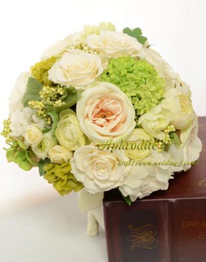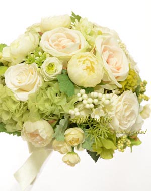 ■プリザーブドをメインに、シルクフラワーをミックスしたブーケ。