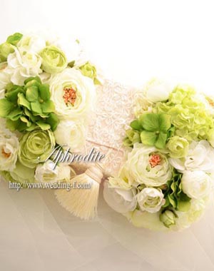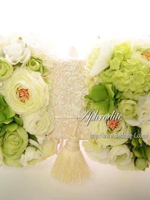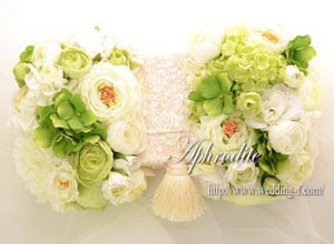 WDとCDに合わせた、リバーシブルのクラッチバックブーケです。