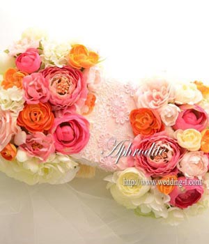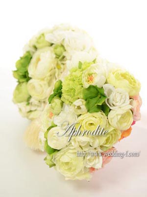 ■表は白グリーン、裏はピンク・オレンジ・白のクラッチバックブーケです。