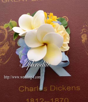 プルメリア、デルフィニューム、モカラ、バラ、スターフラワー、ラナンキュラス |