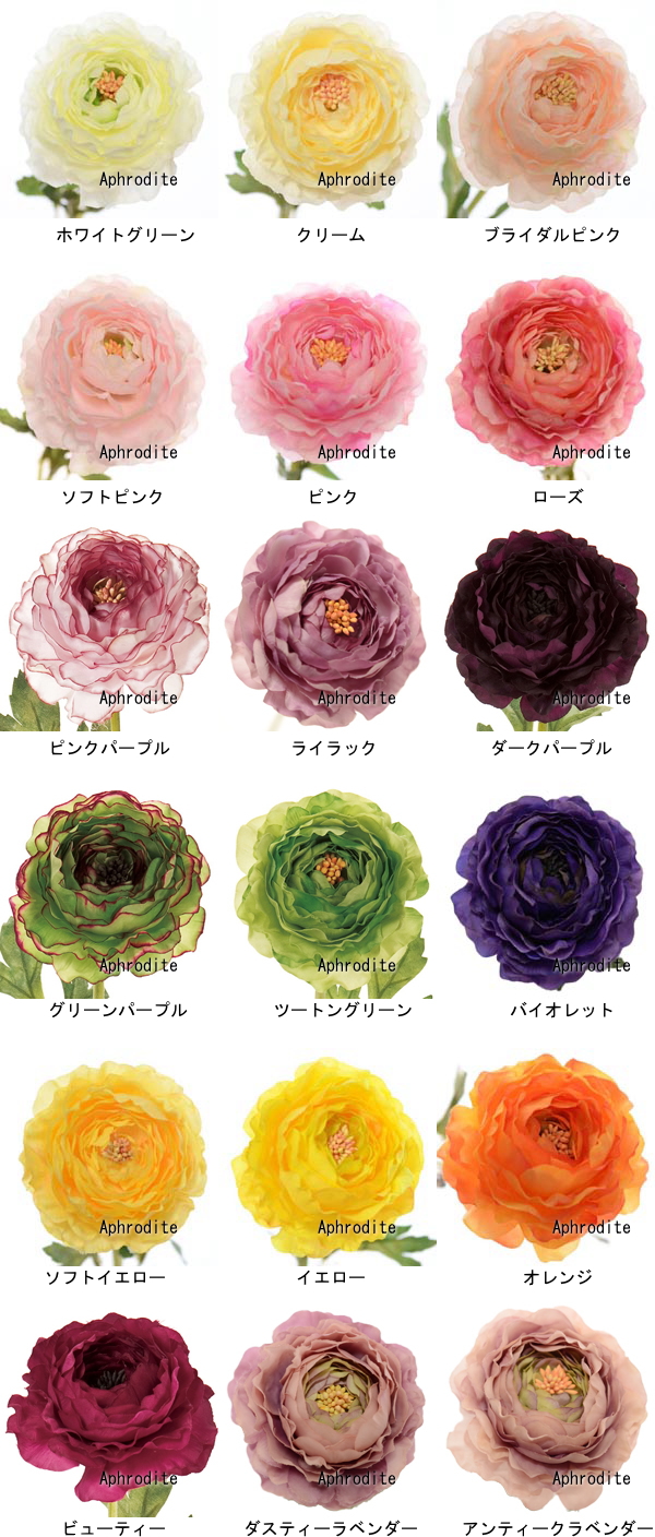 ブーケ・ヘッド・ギフトアレンジ等に使用花材のカラーサンプルです。