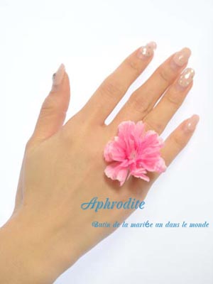 ■濃い目ピンクの八重桜を使った、愛らしいフリーサイズの指輪です。