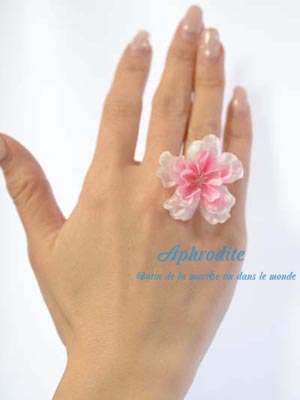 ■しぼりピンクの八重桜を使った、愛らしいフリーサイズの指輪です。