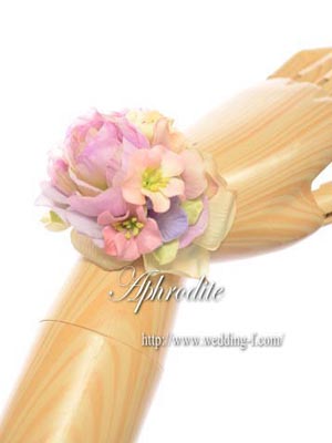 薄紫のラナンキュラスをポイントに、ピンク・紫・オフホワイトの小花を添えました。