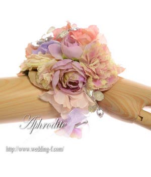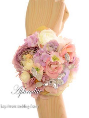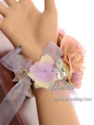 手首裏側にもビジューを取り付けて、裏まで気を使ったリストブーケです。