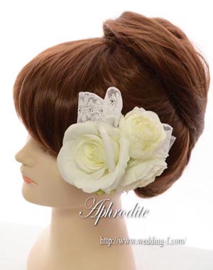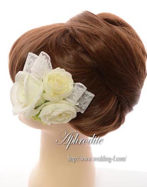 レースのドレスに合わせて、「レースリボン」でヘッドパーツを作りました。
